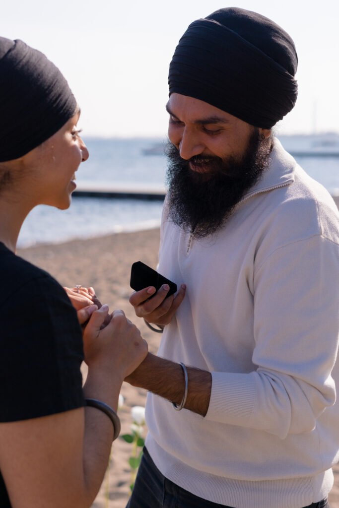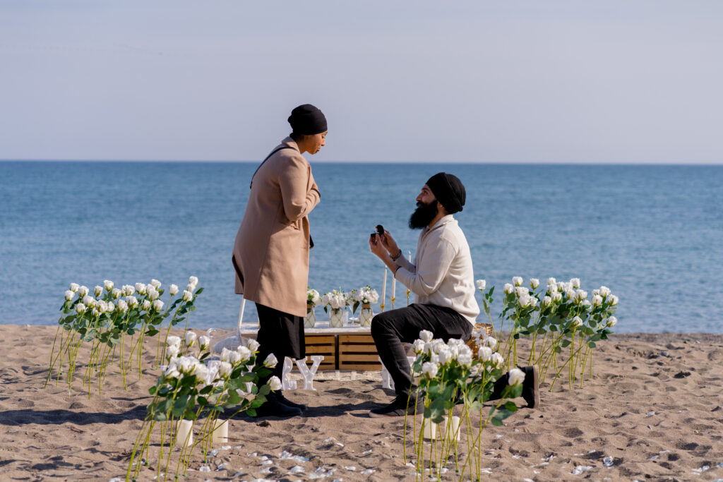 A spring proposal at one of Toronto’s most scenic spots along the shore line. Proposing at the Beaches with a romantic picnic set up 🥂
